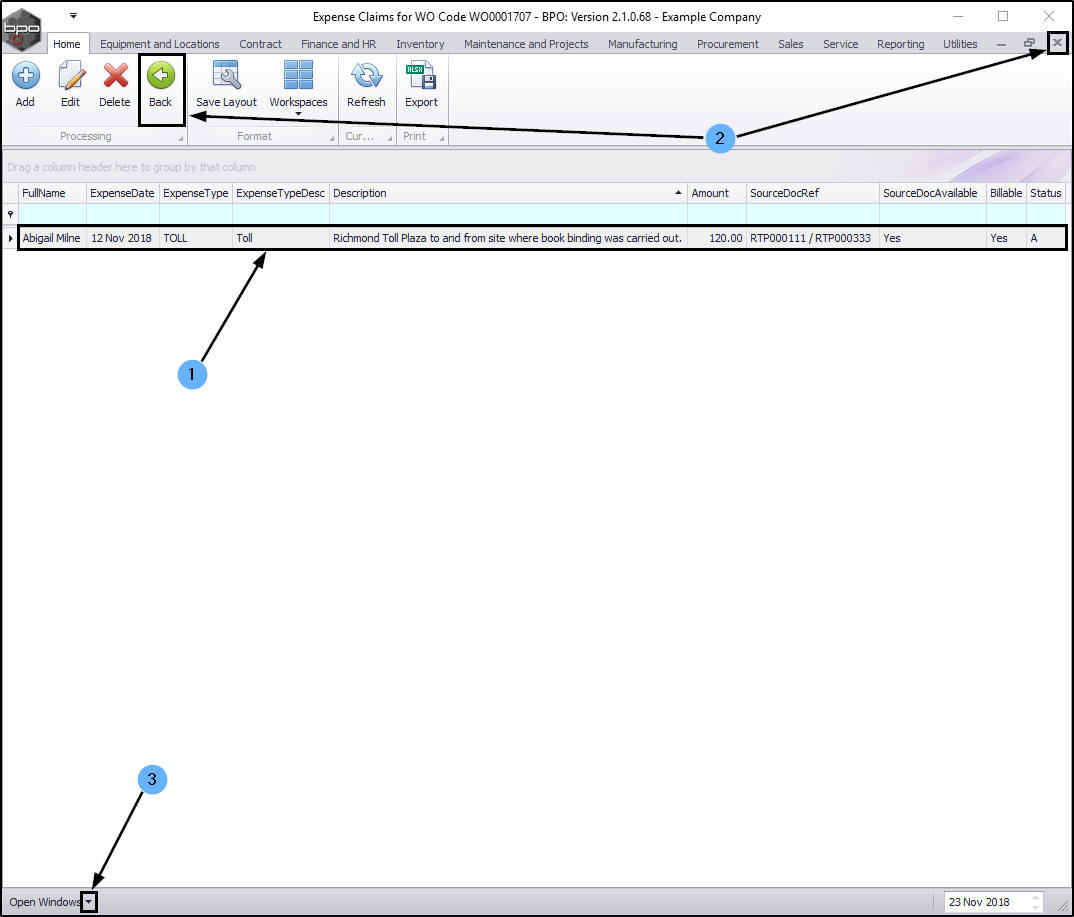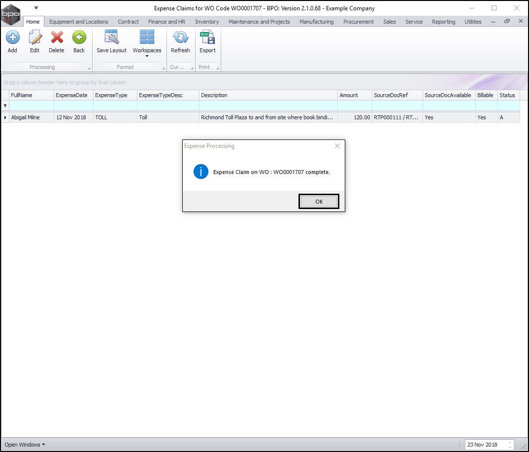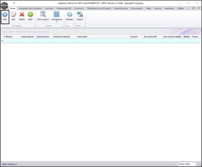 The Expense Claims for WO Code [ ] screen will be displayed.