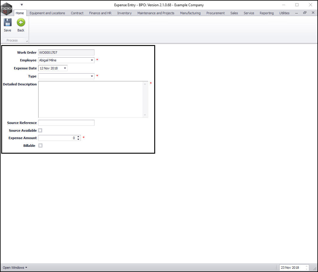 - Employee: This will auto populate with the name of the person currently logged on to the system but you can click on the drop-down arrow and select an alternative employee from the menu if required.