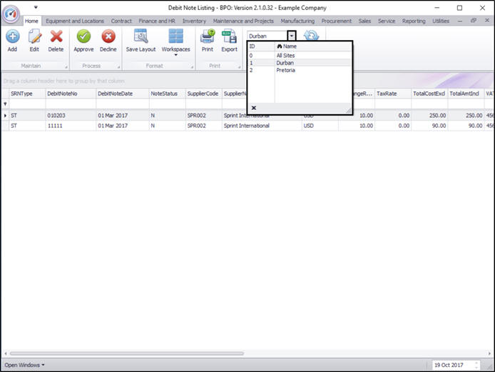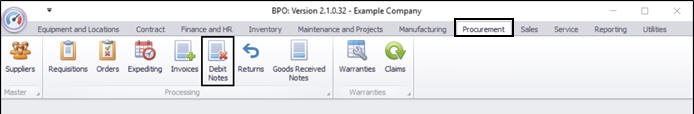 | Ribbon Access: Procurement > Debit Notes |