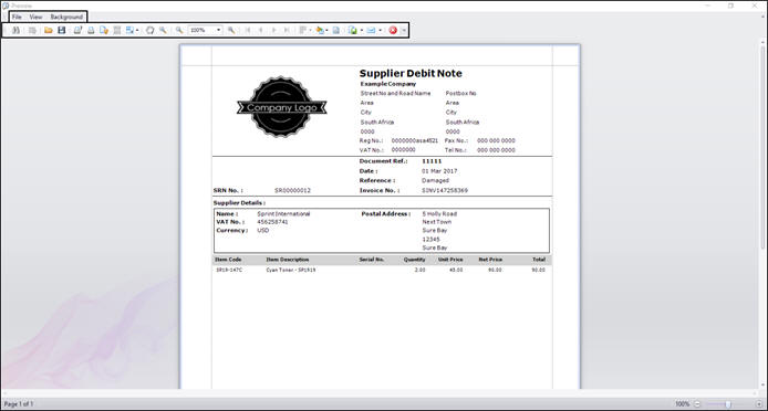 Print Debit Note