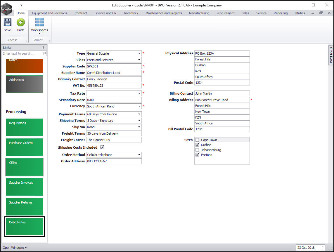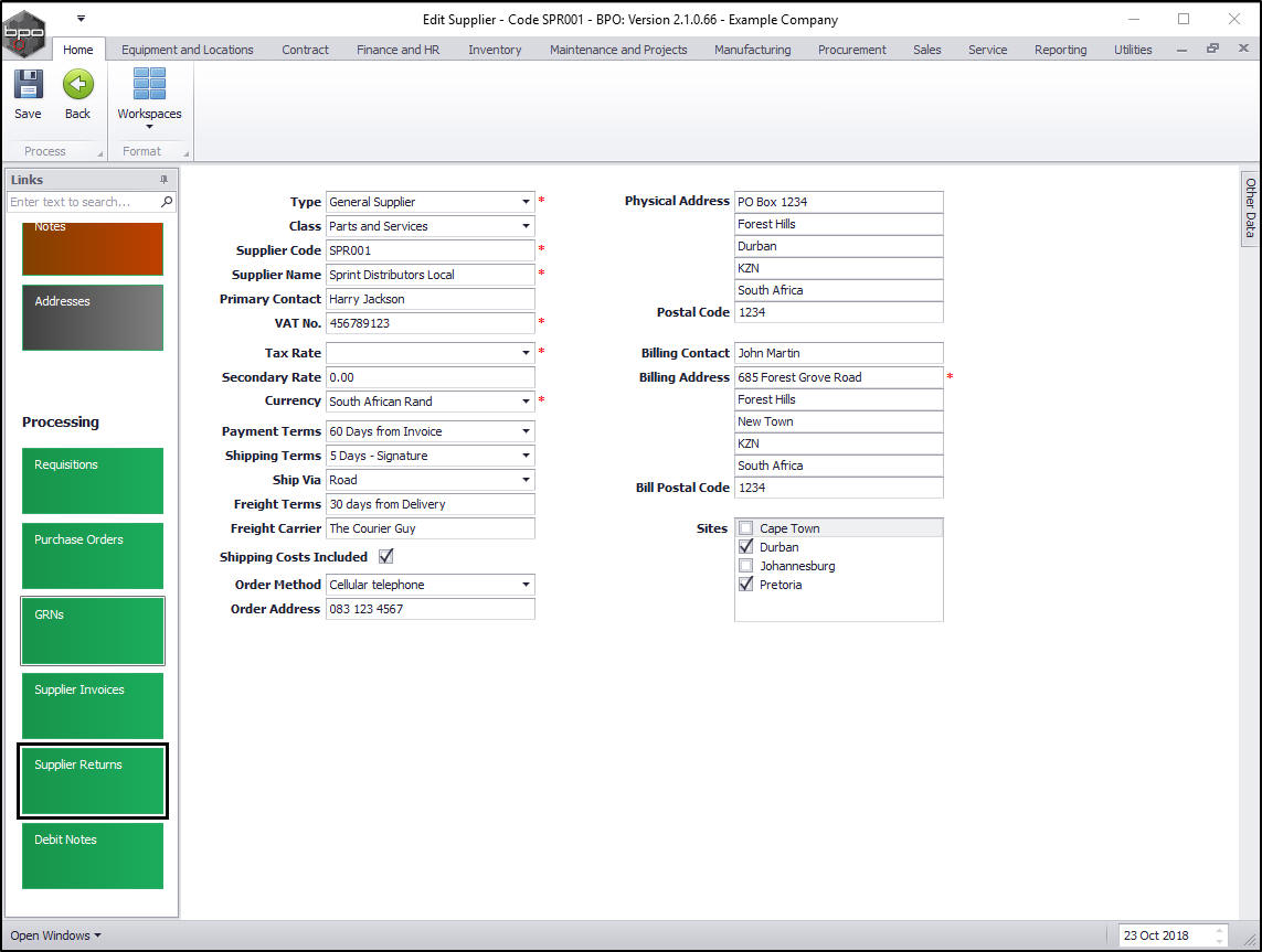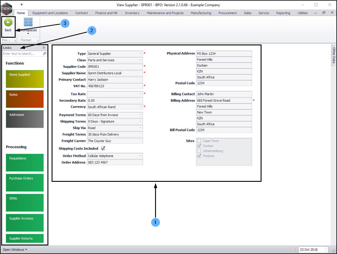 - Click on Back to return to the Edit Supplier - Code [ ] screen.
