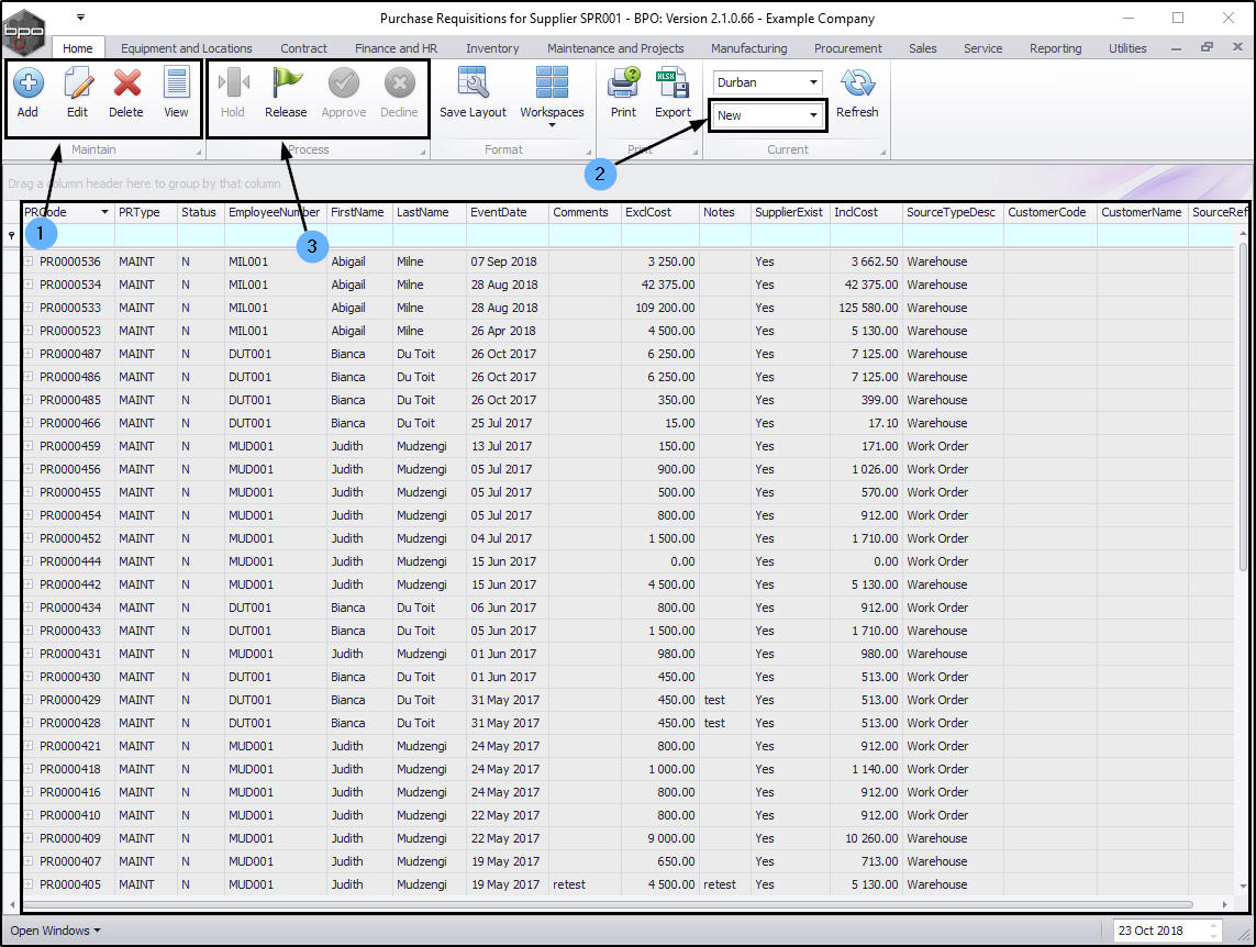 - In this screen, you can Add, Edit, Delete and View a selected requisition.