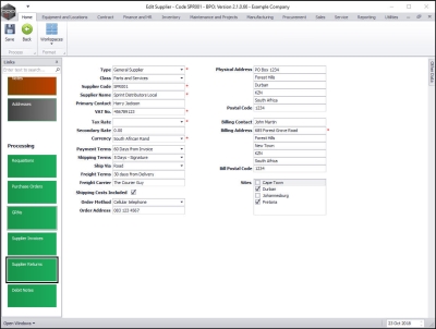 A supplier is anyone who supplies you with goods and/or services. Supplier types can be set up within the system to distinguish between your suppliers.