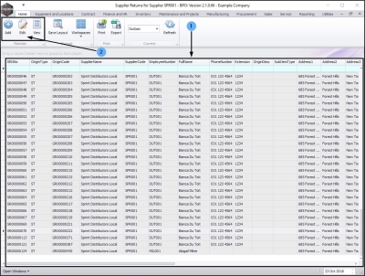 - Click on the row selector in front of the supplier that you wish to view the details of.