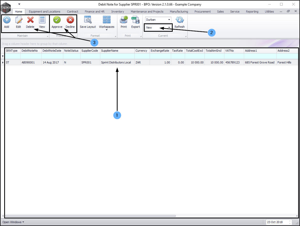 - you can Add, Edit, Delete, View, Approve or Decline a supplier debit note.