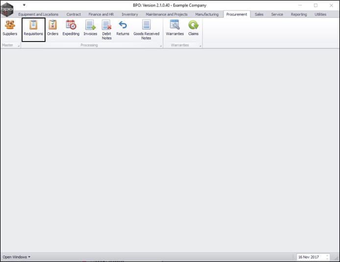 | Ribbon Access: Procurement > Requisitions |