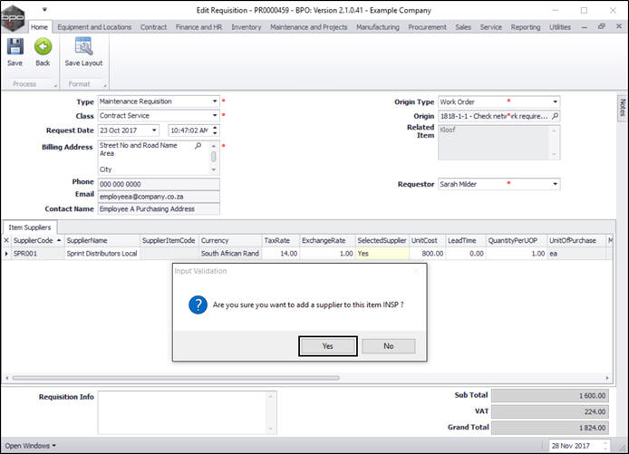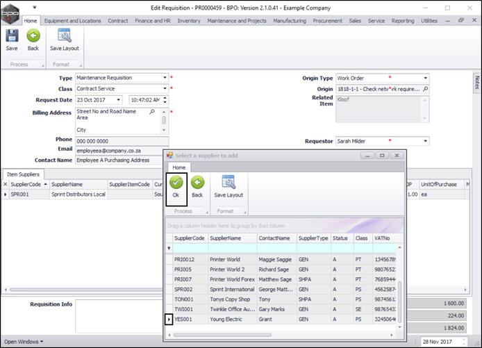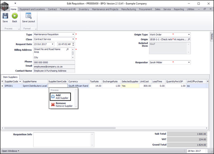 Requisitions - Add, Edit, Delete Item Supplier