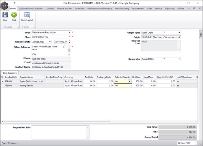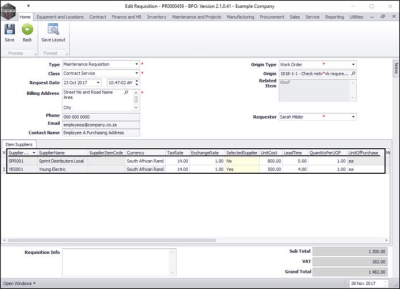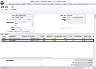 Once you have created a purchase requisition, you may be required to add, edit or remove a supplier, or make changes to the items supplied, e.g. change the price.