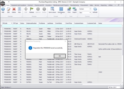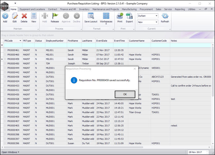- Requisition No. [ ] saved successfully.