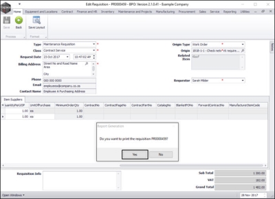 Print Requisition - Yes