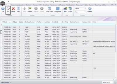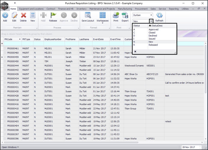 - In the Purchase Requisition Listing screen,