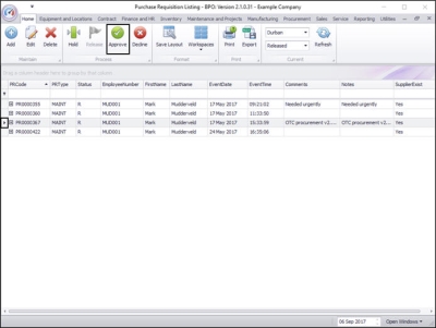 Purchase Requisitions must go through an approval process before a Purchase Order is created. (This can be linked to an Approval Matrix which is set up in the Purchasing Centre)