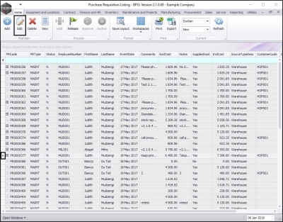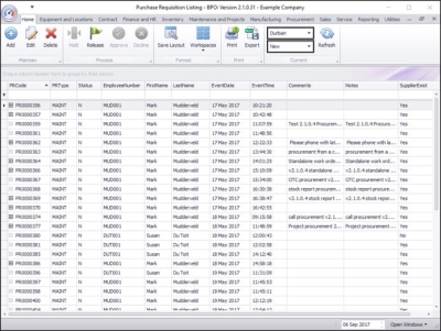 In the Purchase Requisition Listing screen,