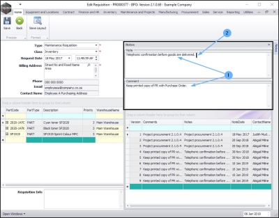 Requisition Notes and Comments