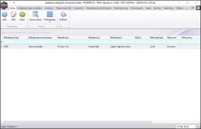 - The updated address will be displayed in the Address Listing for Purchase Order:[ ] screen.