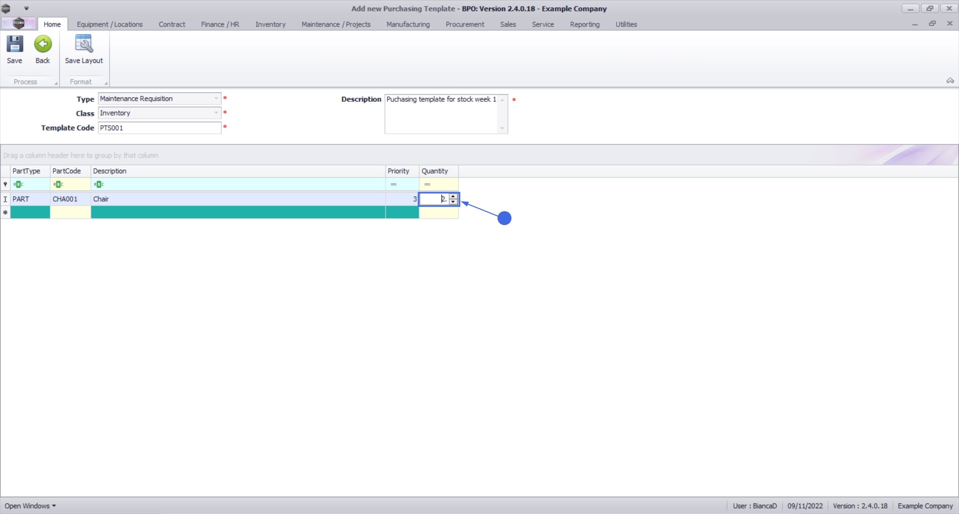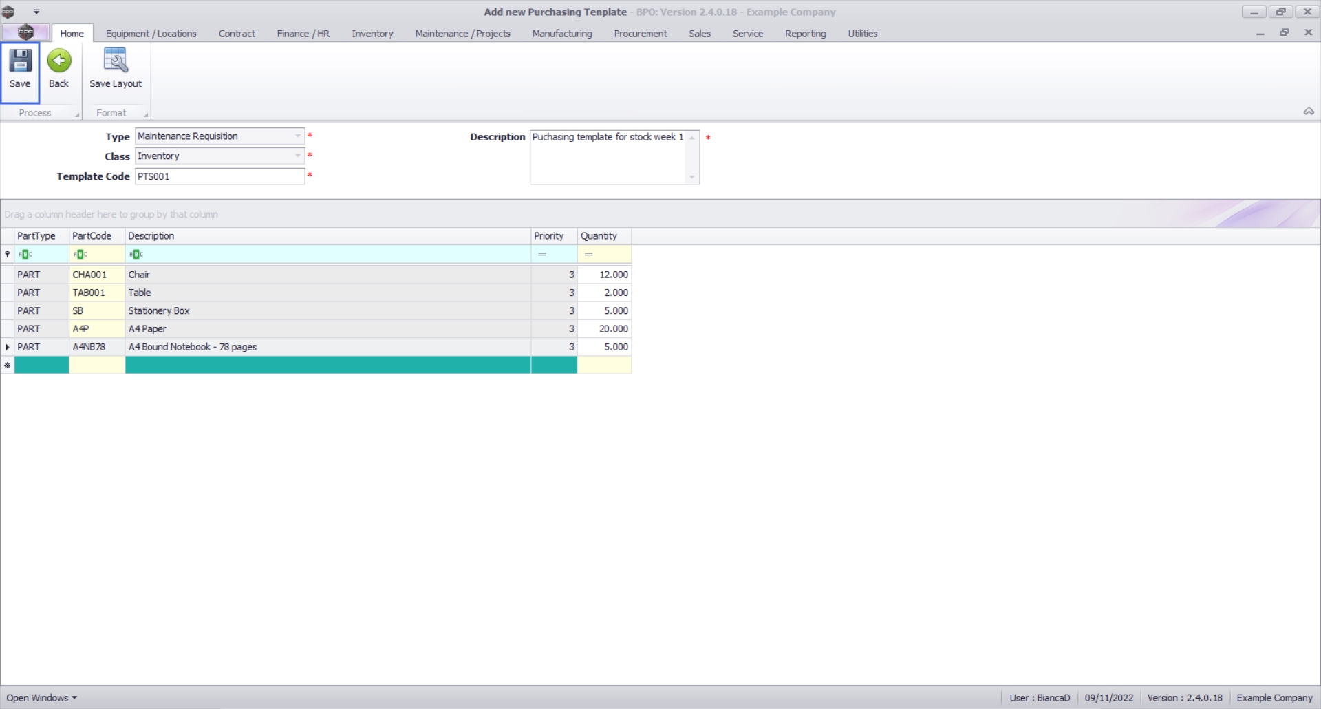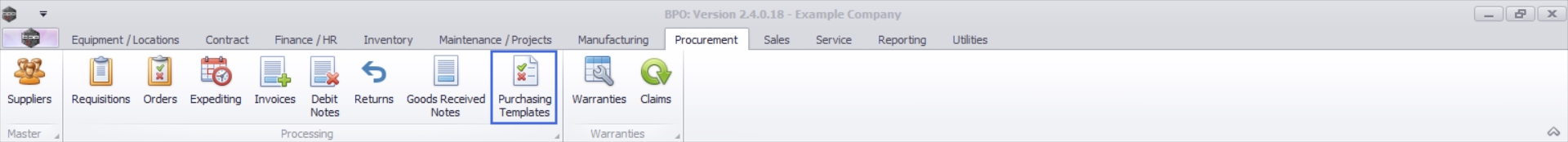 A message box will come up noting: Purchasing Template No [purchasing template number] saved successfully.