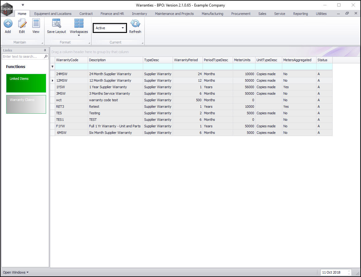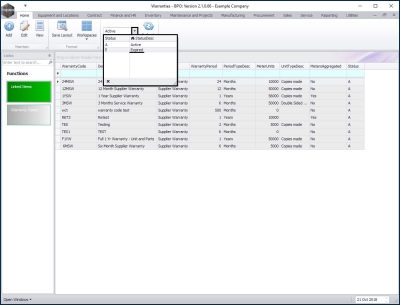In the Warranties listing screen you can view all the Active and Expired warranties on the system.