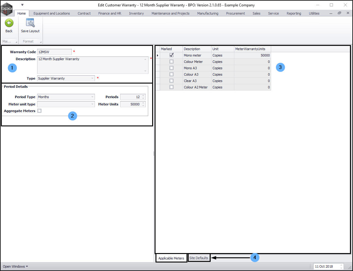 | Ribbon Access: Procurement > Warranties |
