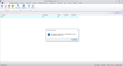 A message box will come up noting: The document [document description] for Invoice [invoice number] has been saved.