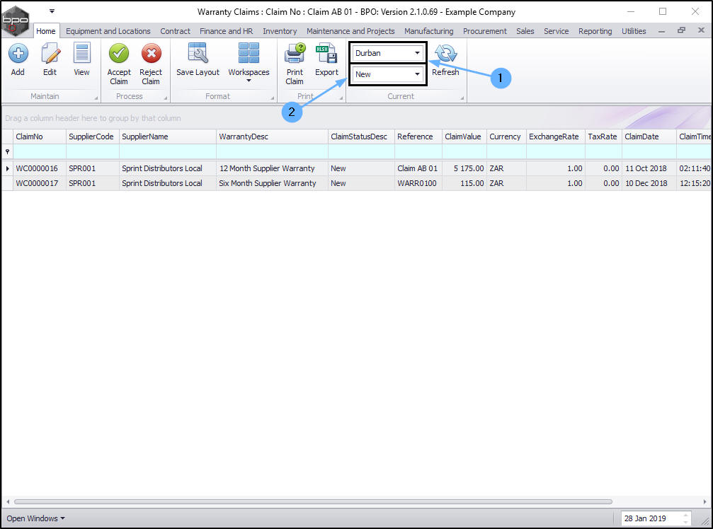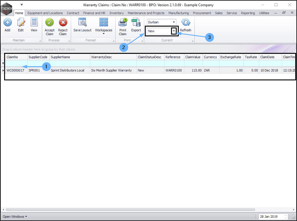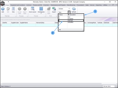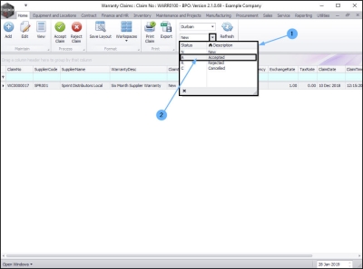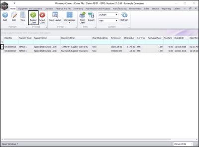 - The claim can now be found in the Warranty Claims: Claim No: [ ] screen where the status is set to Accepted.