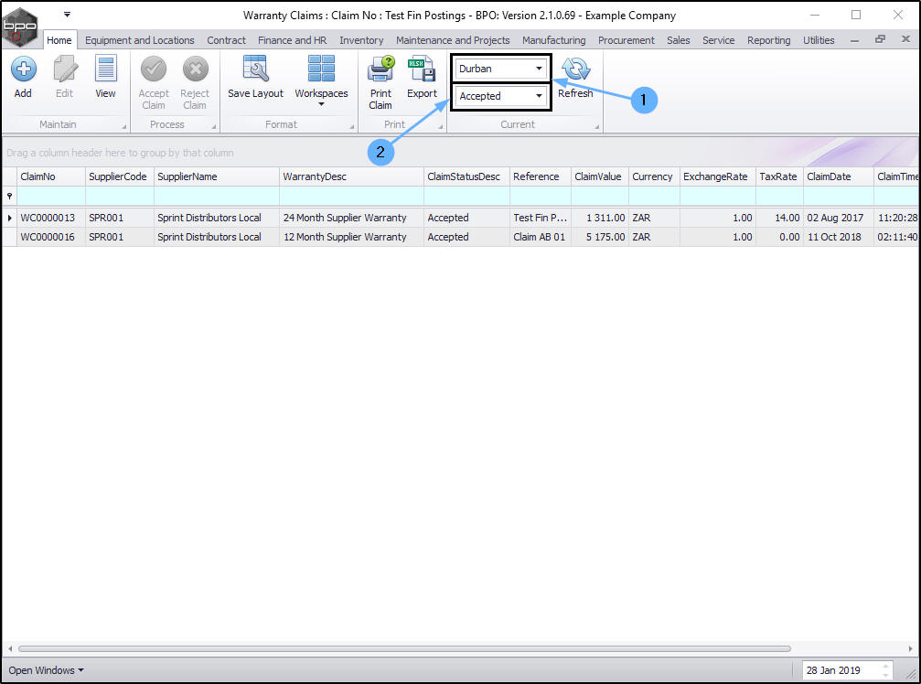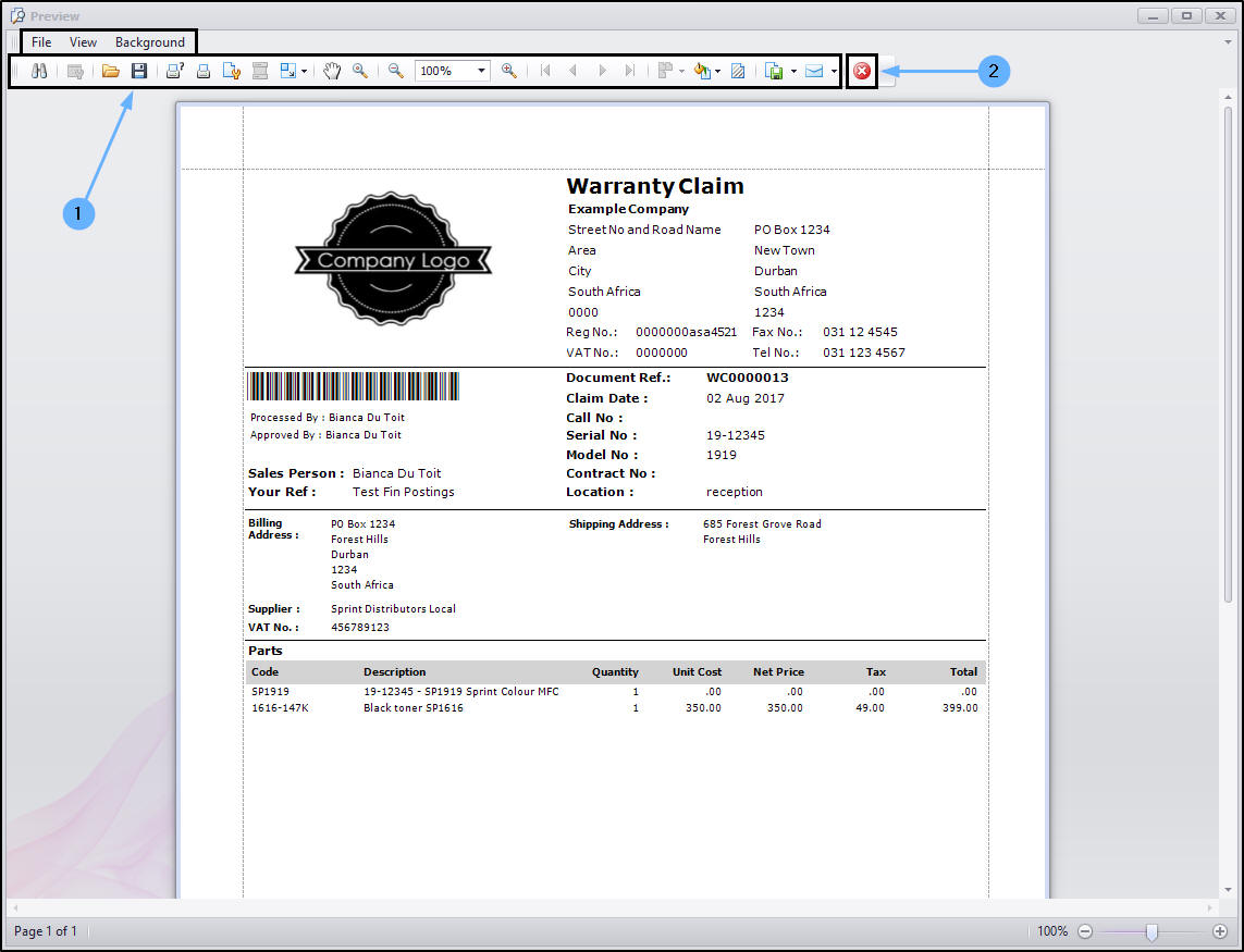 - From here you can View, Print, Export or Email the Warranty Claim.