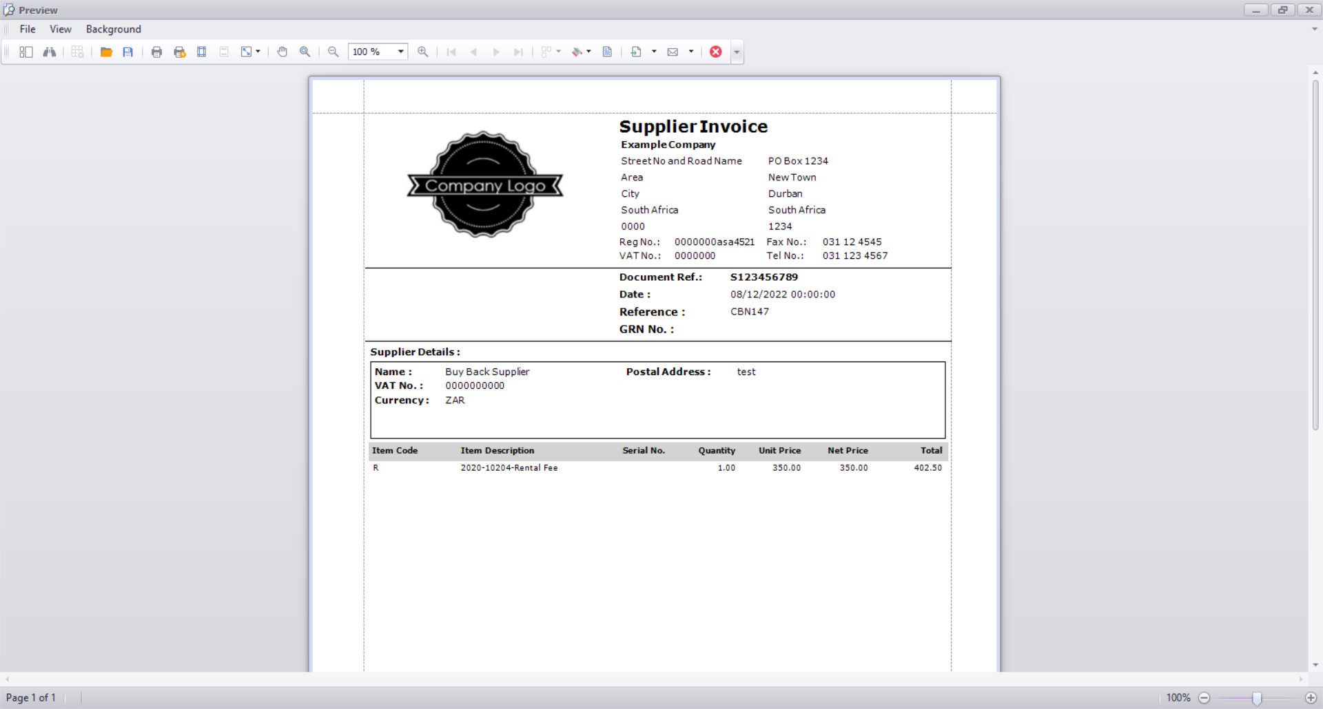 The new line will be populated with the Supplier Invoice number and the Invoice Total Amount (based on the current items listed).