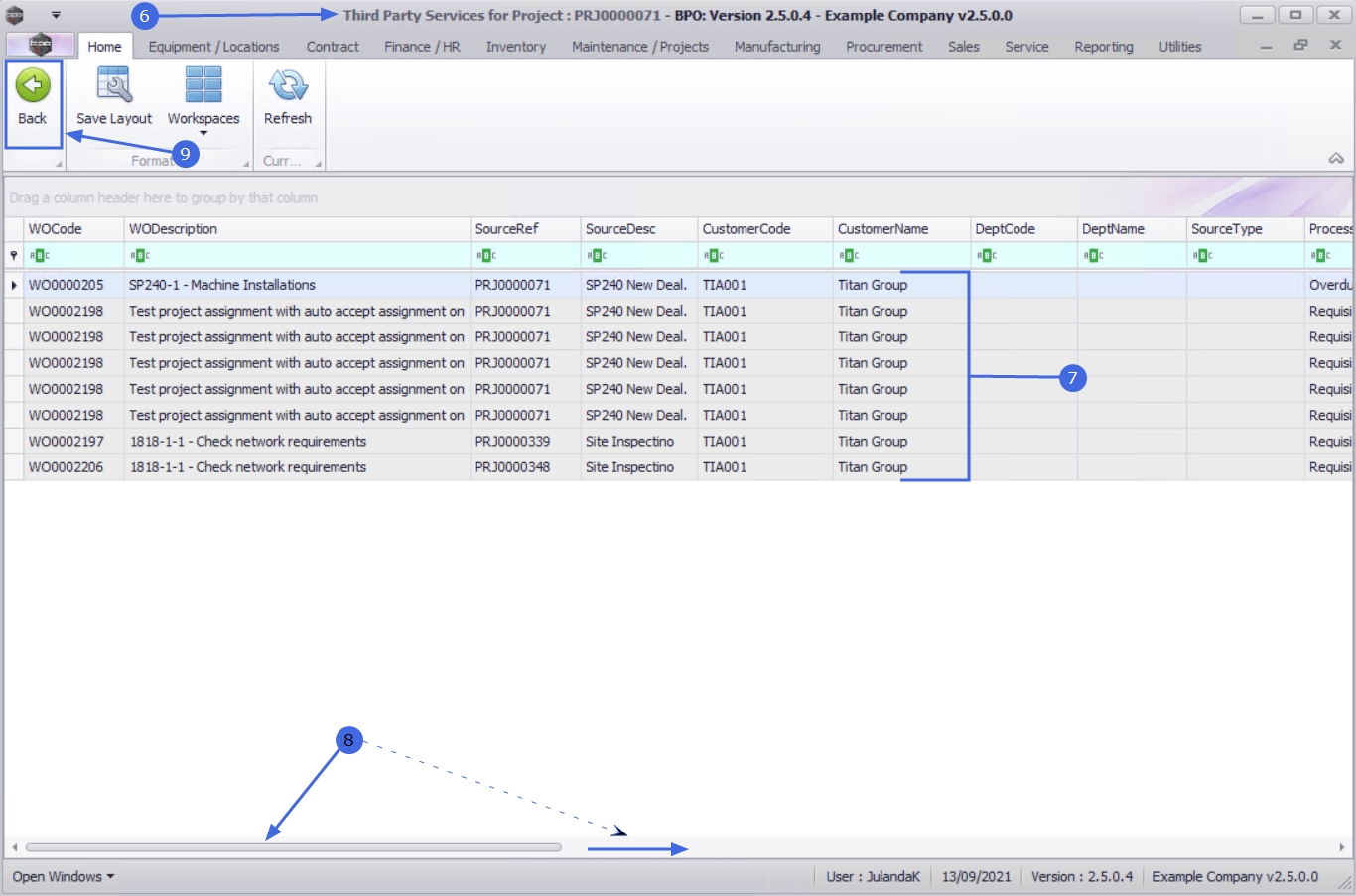 | Ribbon Access: Maintenance / Projects > Projects |