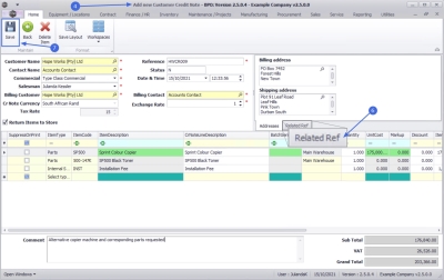 Note that no changes can be made to the information on the Credit note as this is a View only screen. - Click on Back to return to the Sales Quotes for Customer screen.