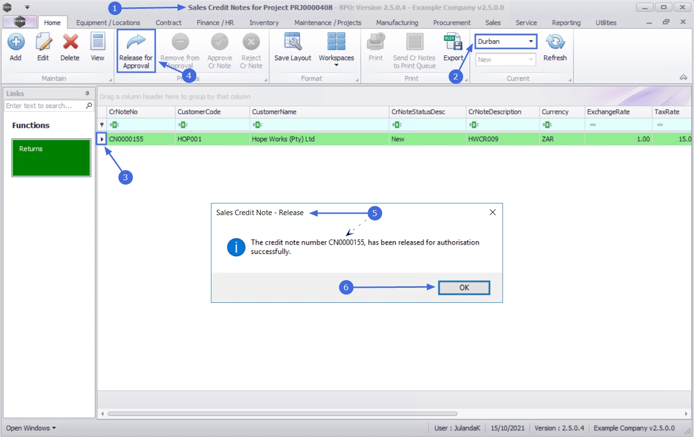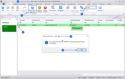 - The credit note number [credit note number], has been released for authorisation successfully.