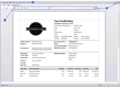 - The Tax Credit Note will display in the Preview screen.