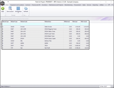 All cost items and invoiced processed against this project will be listed, along with a Net Profit total.
