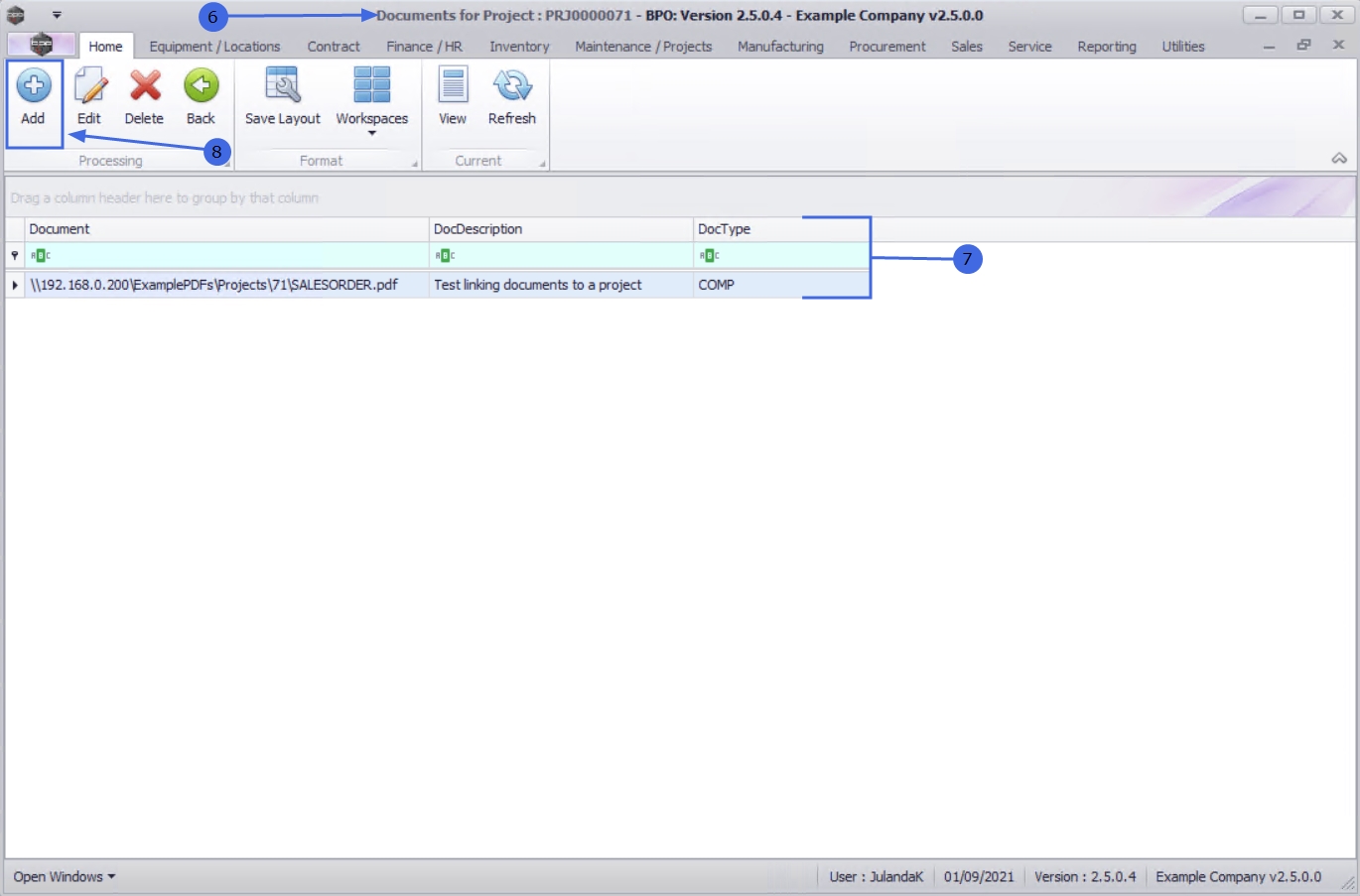 - When you have finished reviewing the document, close the document screen that you are in, to return to the Project Listing screen.