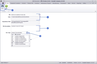 Note that the Repository Path field is populated with the path that has been configured in the Company Configuration.
