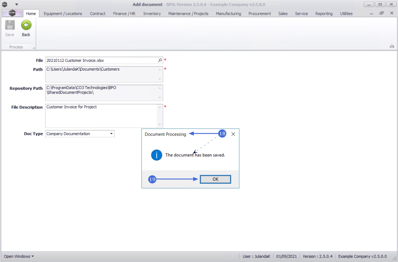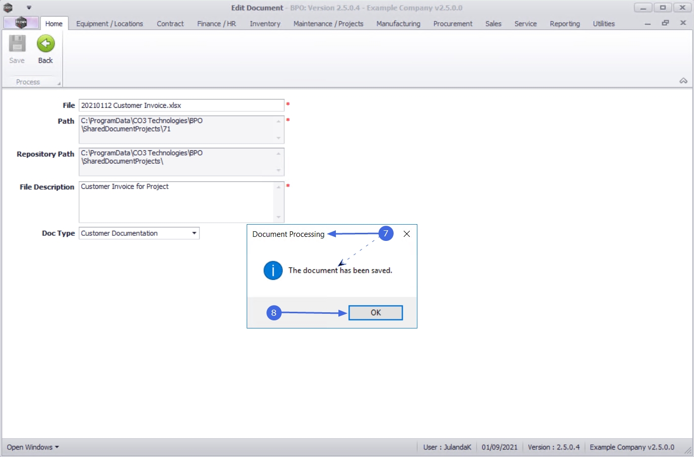 Note that BPO does not save the physical document, but a link to where the document has been saved.