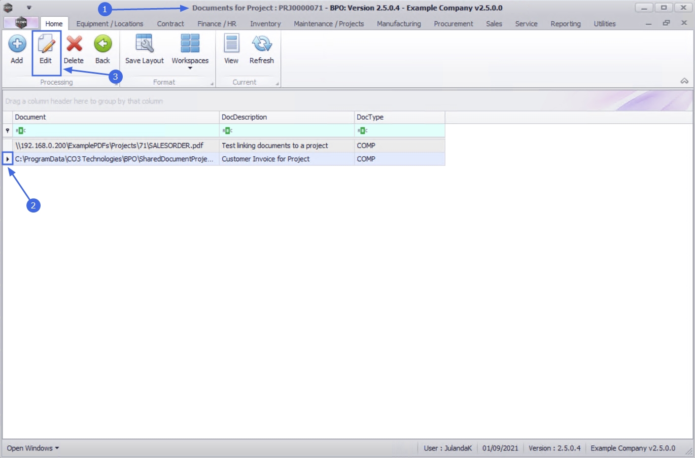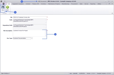 - The Edit Document screen will be displayed with the selected file information populating the fields.