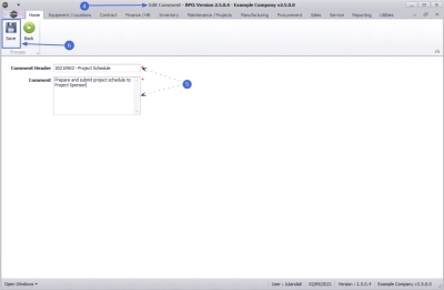 - Comment Header: Type in the Comment Header for the Project Note. This information will display on the Notes for Project list screen to identify the Note.