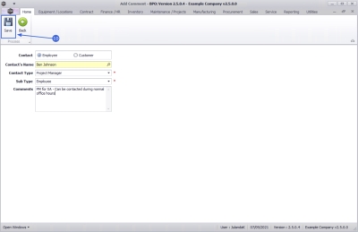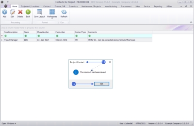 - The Contacts for Project screen has been updated with the new Contact.