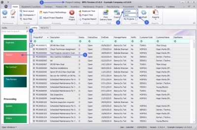 | Ribbon Access: Maintenance / Projects > Projects |