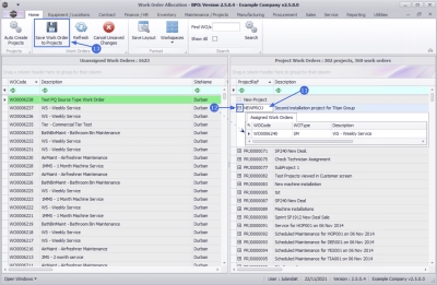 - Hold down the Ctrl key on your keyboard, then use your mouse to click on each unassigned work order you wish to allocate to a new project, or