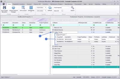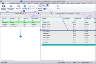 | Ribbon Access: Maintenance / Projects > Technician Allocation |