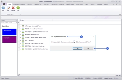 1. The Project Methodology Maintain screen will be displayed.