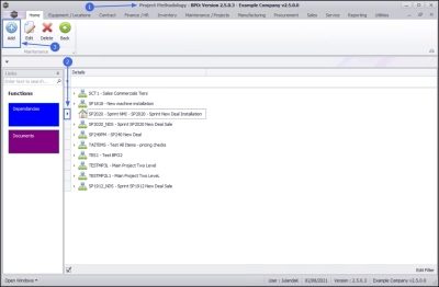 1. The Project Methodology Maintain screen will be displayed.
