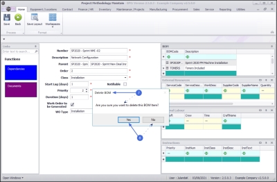 - Click on No to ignore the request and leave the BOM item linked to the project methodology.