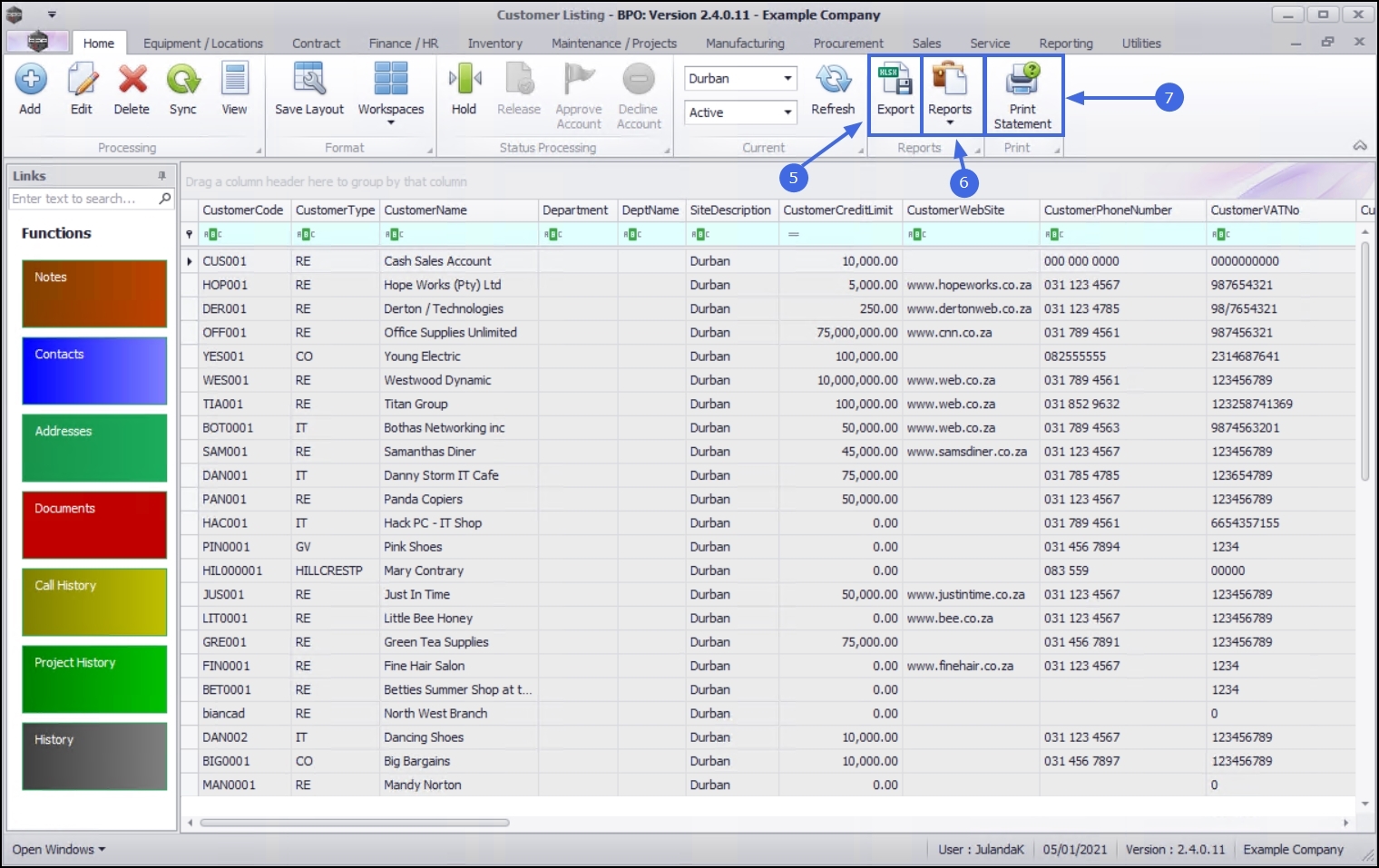 - Export allows you to export a Customer List to Microsoft Excel.