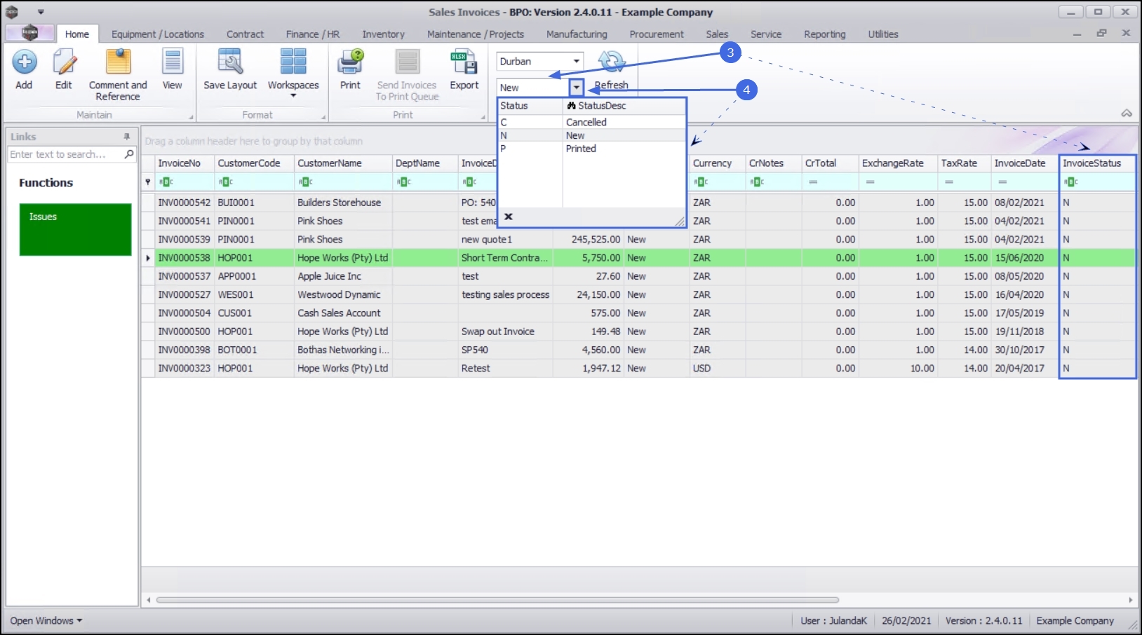 4. N - New will display a list of all the Sales Invoices with a New Status
