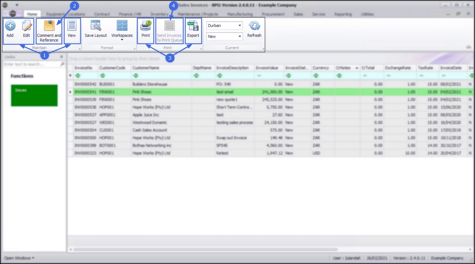Ribbon Access: Sales > Invoices