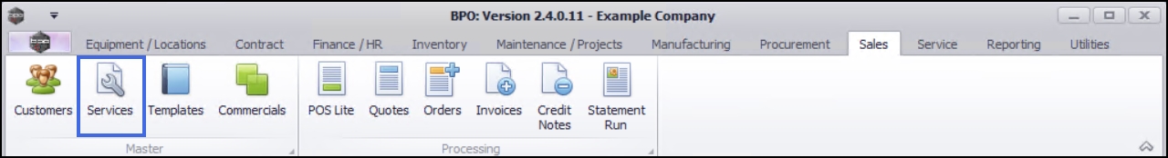 - Status: The Status selection Active will list all [A]ctive sales services. Changing the Status to Inactive will change the listing to view all [I]nactive sales services.