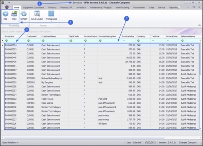 - The data grid lists all the Sales Transactions that have been processed, in descending order.