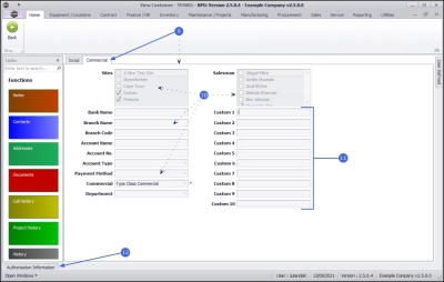 - Here you can view the sites and salespersons linked to this customer, as well as the customer banking details, payment method e.g. Debit Order and the customer commercial.