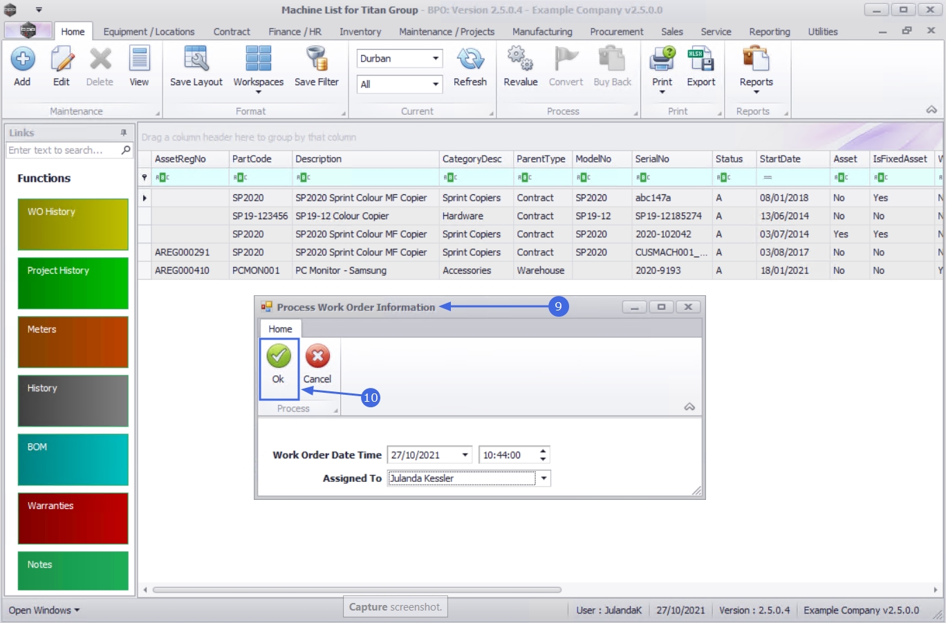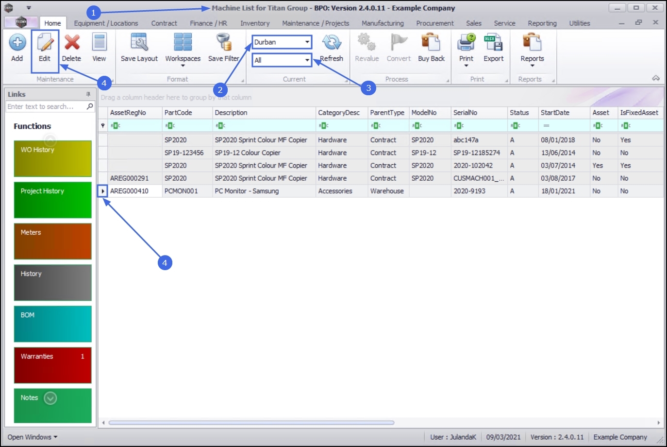 - Select the row of the customer where you wish to link a customer-owned asset / machine.